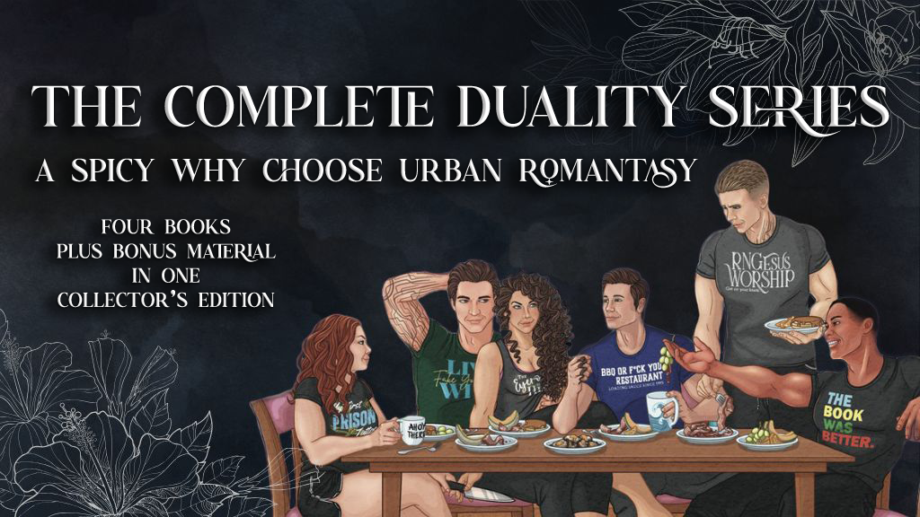 This hardcover, foiled special edition omnibus includes all four books (Duality, Duplicity, Discord, and Dissent) plus the bonus epilogue (Just Deserts) and an additional 20+ pages of bonus content like location maps, editorial changes, and other discussions about the planning of the series.
